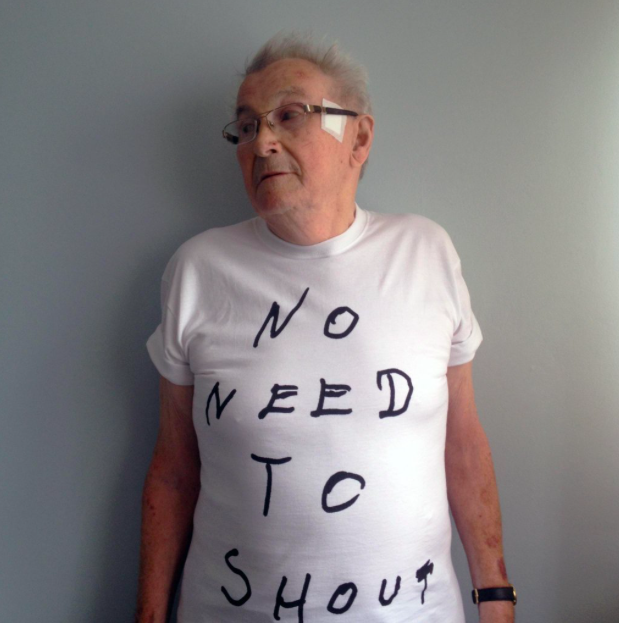No Need to Shout was a t-shirt designed for elders to wear when navigating the health service so Doctors didn’t shout at them, assuming they were deaf or hard of hearing. An additional 50 were sold to raise the money needed to open his debut show...